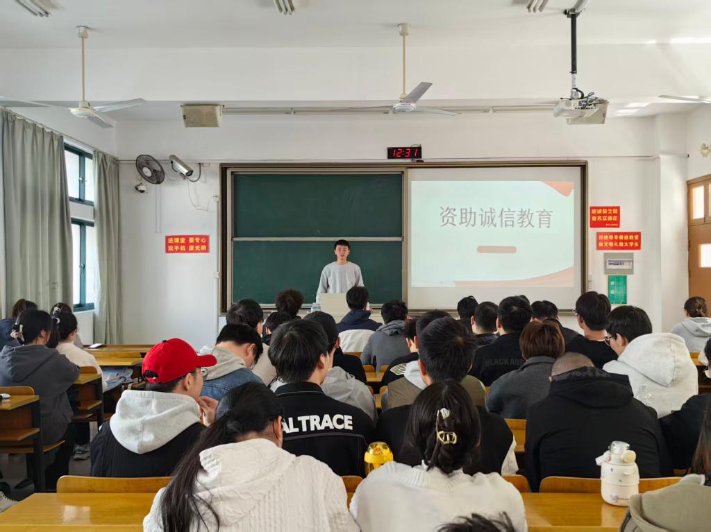班会现场,辅导员唐国平围绕国家助学贷款政策细则、还款流程、逾期后果等关键内容展开详细解读,结合真实案例生动阐释了诚信还贷对个人征信、职业发展及社会信用体系建设的重要意义。同时面向低年级员工,强调了在校期间诚信履约、珍惜信用记录的重要性,引导其树立 “诚信立身、守信做事” 的价值观。