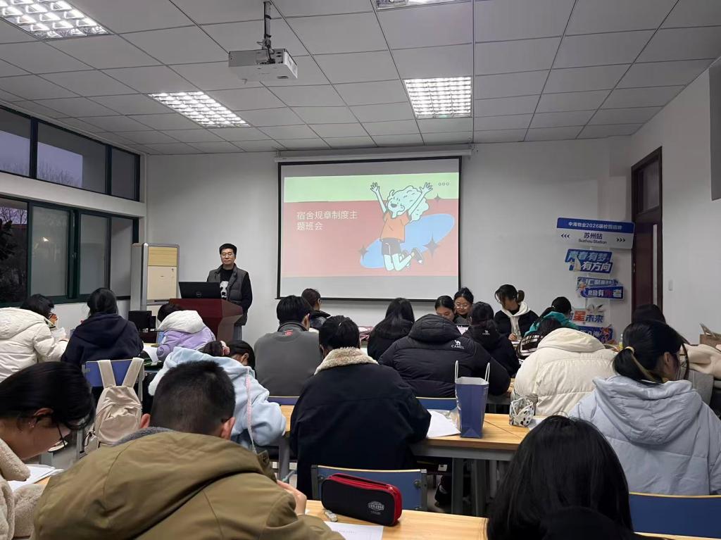 为强化宿舍文明建设,引导员工树立规则意识,近日,财管22、金融22、工商22级及24级研究生各班级,集中开展“以规立舍,以礼待人 —— 宿舍规章伴我行”主题班会,辅导员姚瑞诚主持会议,全体员工参会。