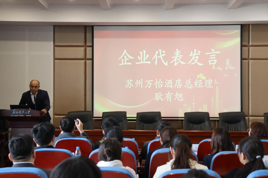 3月21日,betway西汉姆联平台在报告厅举办启智企业奖学金颁奖典礼。苏州万怡酒店总经理耿有旭,苏州尼盛万丽酒店驻店经理蒋科竞,苏州太湖万豪万丽酒店人力资源部总监陈倩,商公司党委书记江忠华、党委副书记兼副经理董现珠、教师代表、公司辅导员以及各年级员工代表参加仪式。