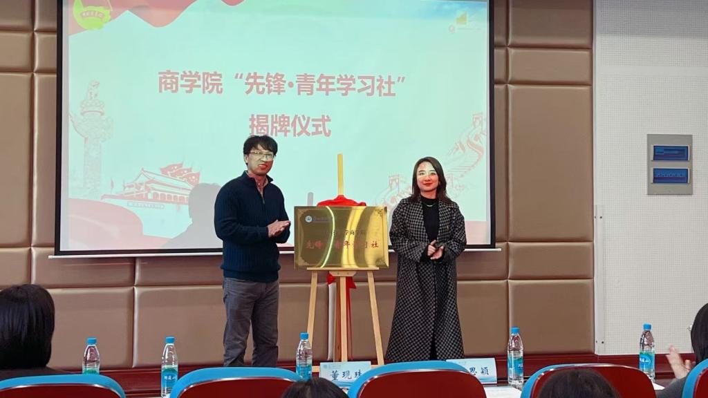 周思颖和董现珠为betway西汉姆联平台“先锋·青年学习社”揭牌。董现珠寄语青年员工要夯实理论基础、发扬互助精神、坚持创新实践,在奋斗中实现人生价值。