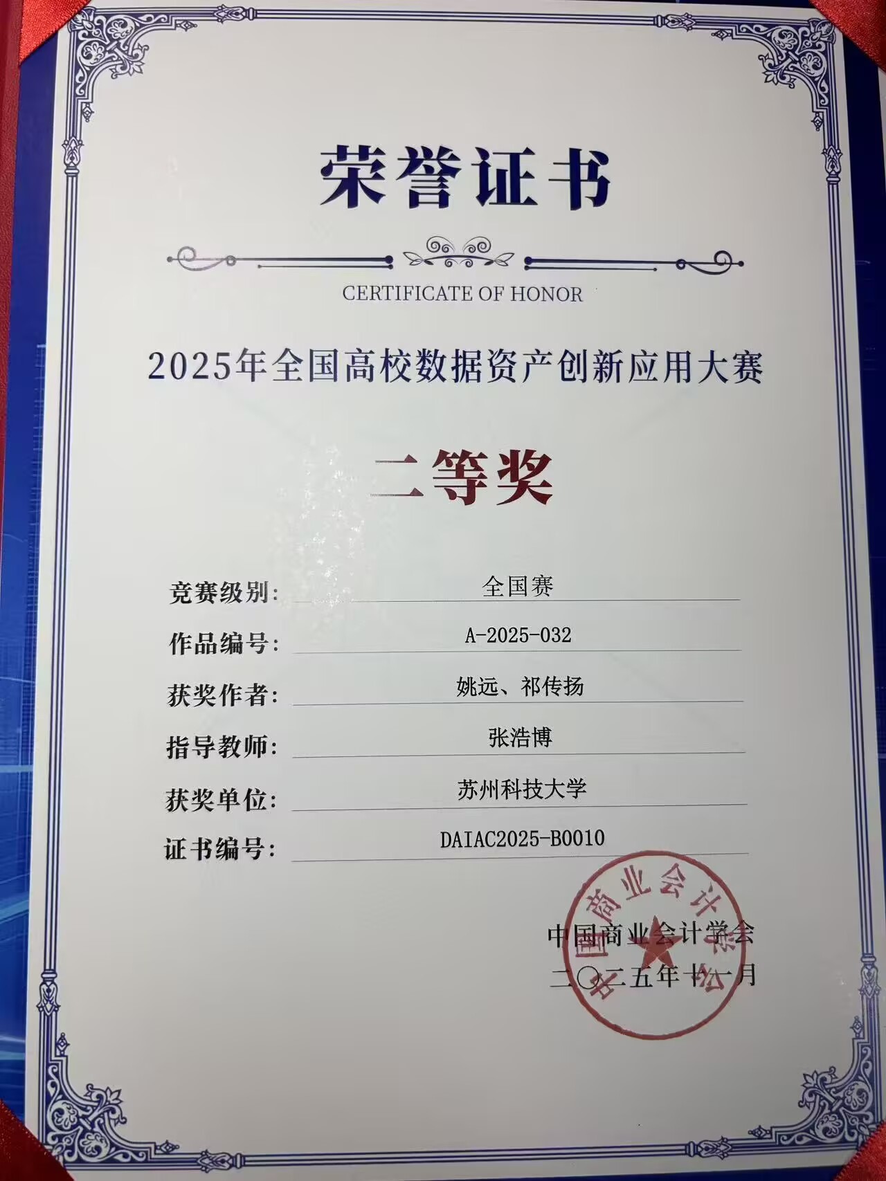 近日,2025年首届全国高校数据资产创新应用大赛总决赛落下帷幕,betway西汉姆联平台金融工程专业员工姚远、祁传扬完成的作品《区块链赋能第三方数据登记服务:基于数据产权三权分置的创新设计与实现》(指导老师张浩博)荣获本科组全国赛二等奖!