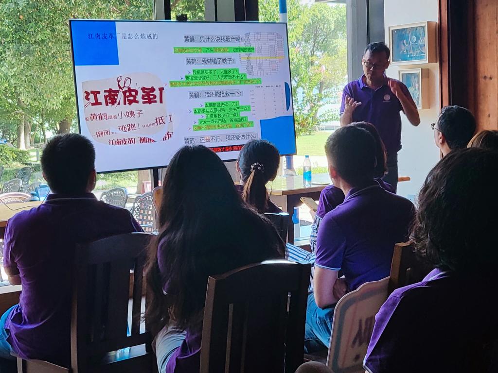 在总结会上,由公司2023级MBA学员组成的9支队伍对本次参赛情况进行了汇报,成绩优秀组代表进行了经验分享并与学员互动,解答学员们的疑惑。参赛指导教师进行了点评。MBA教育中心执行主任黎宏宝对后续的备战国赛工作进行了详细部署和安排。